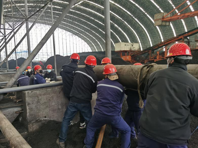 商洛項目部黨支部組織開展“戰疫保供一線,黨旗高高飄揚”煤場排雨母管倒運主題黨日活動,助力保電保熱。寒冷的煤場里,卻是如火如荼的景象,由于煤場內無法使用起吊設施,直徑450mm的管道只能靠人力移動、安裝至指定位置。大家喊著號子,使出渾身力氣,管道也只能微微前進一點。一米、兩米……沉重的管道逐步就位。