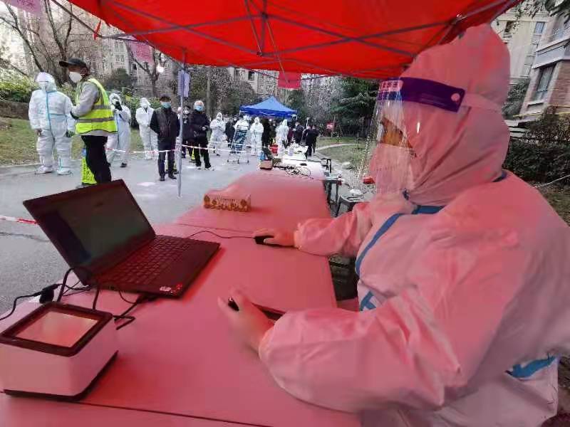 在綠地世紀(jì)城小區(qū)的核酸采樣工作中,趙佳杰從早上8點(diǎn)一直工作到晚上8點(diǎn)。太陽落下,他凍得有些發(fā)抖,但還是堅(jiān)持協(xié)助完成了小區(qū)800多人的采樣工作。他說,疫情使人們變得更加團(tuán)結(jié),小區(qū)業(yè)主都非常配合,其實(shí)是我們每個人都在用實(shí)際行動為社區(qū)筑起一道堅(jiān)固的屏障。