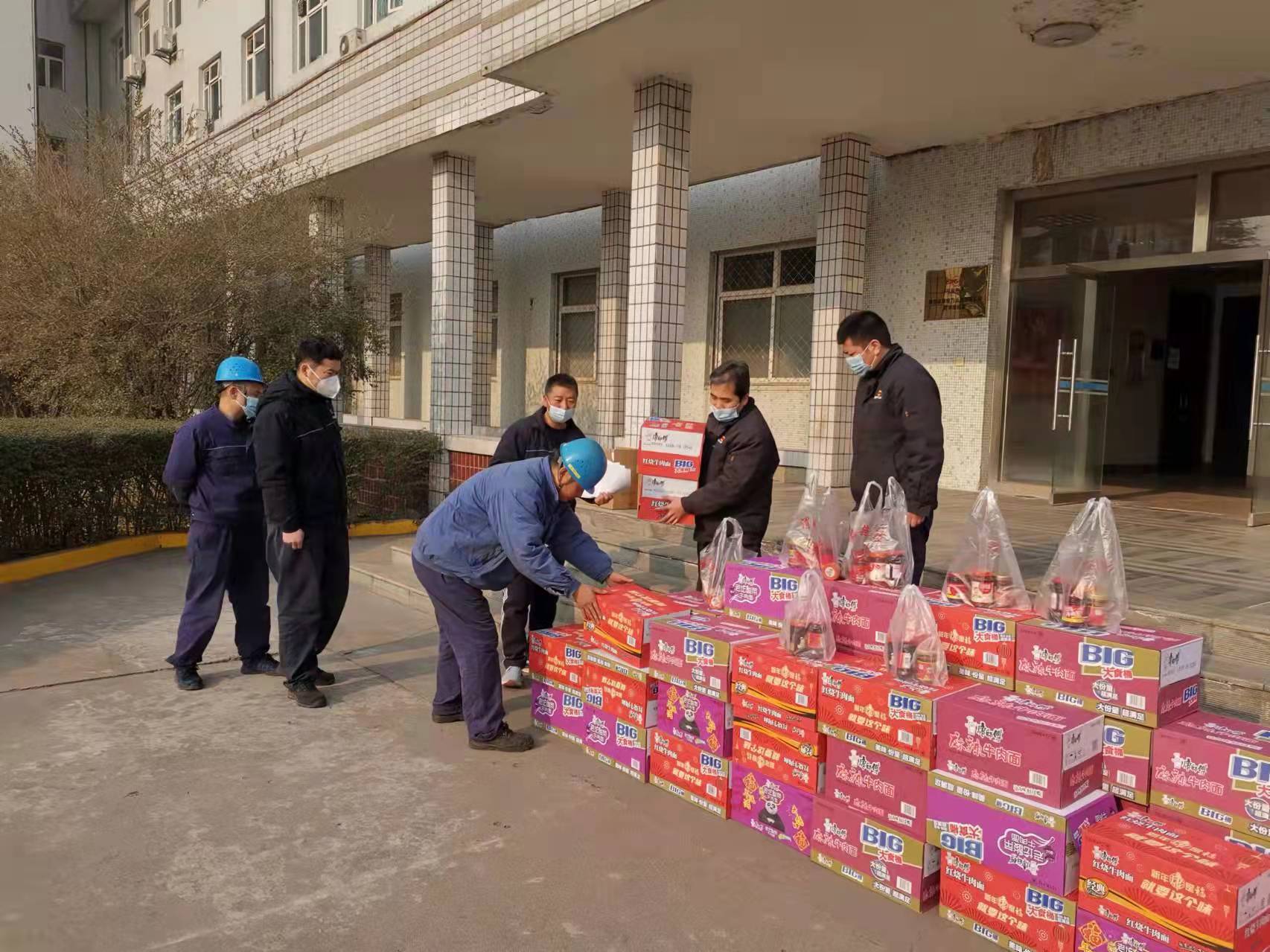 趙石畔項目部黨支部為堅守一線的員工購買食品和各類防疫物資,在這個寒冷的冬天給大家帶來了溫暖。