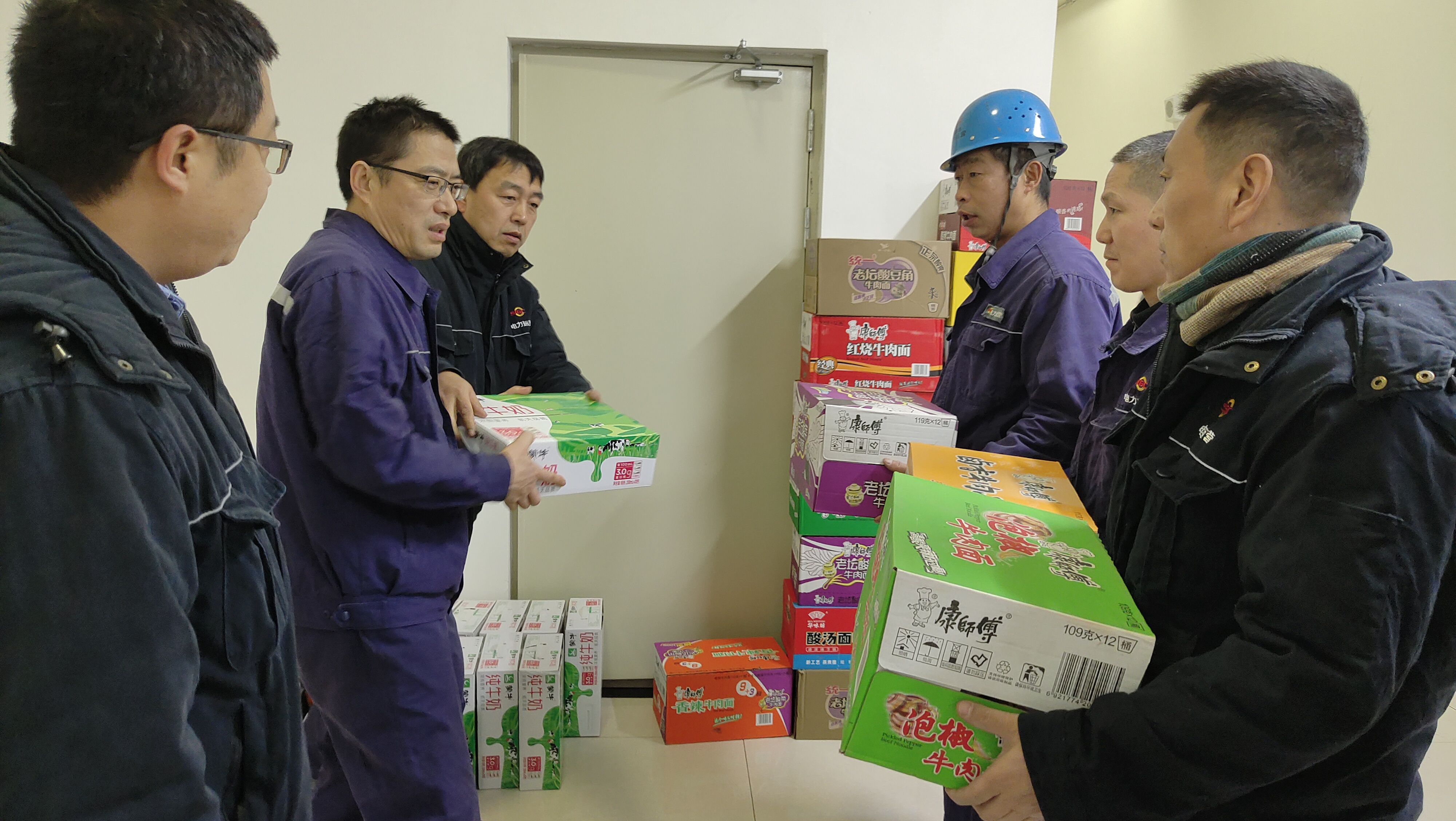 麟北項目部黨支部多處聯系搜集資源,購買到了消毒洗手液及方便面等物資,慰問堅守在疫情防控、供熱保電的一線班組員工。
