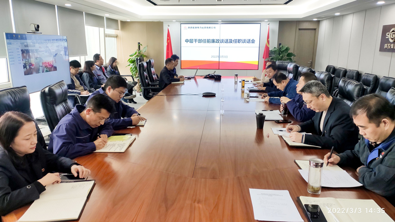 3月3日,公司召開中層干部任前集體廉政談話及任職談話會。黨委書記、董事長毛冬紅,黨委副書記、總經理張小鋒,紀委書記任廣軍及14名新任職中層干部參加會議。會議以視頻和現場相結合的方式召開,由人力資源部副主任魏鐸主持。