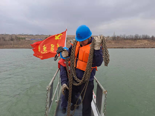 3月12日,趙石畔煤電水源地因瞬時大風及冰凌聚集沖擊取水管線浮箱及泵船,造成取水管線產生變形并發生位移,嚴重偏離原位20余米,給機組設備供水安全帶來巨大隱患。趙石畔項目部連夜組織人員、調配工器具到水源地進行搶修,經過不懈努力,于第二天臨時恢復供水。