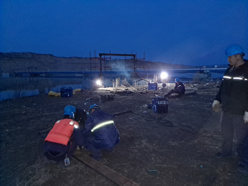 正值#2機組檢修時期,面對人員緊張、任務繁重等困難,項目部合理調配人員,現場搭建臨時帳篷,全程監控浮橋變化情況,焊接臨時浮箱及龍門架,起吊3號浮箱及相關取水管線及廊橋,搶修工作安全有序開展。