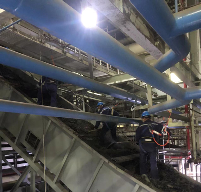 4月7日,吉木薩爾發電#1爐撈渣機堆積大量焦渣,嚴重威脅機組安全運行。吉木薩爾項目部立即組織調配其他班組成員進行支援,歷經3個小時奮戰,用鐵锨、耙子等工具清理焦渣。現場雖“煙霧繚繞”,但清焦工作井然有序,經過加班加點,第一時間將撈渣機內堆積的焦渣全部清理至渣倉。通過此次應急搶修,為1#機組安全穩定運行提供了有力保障。