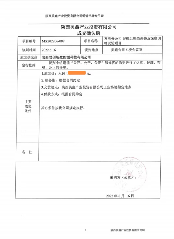 日前,君創科技中標陜西美鑫產業投資有限公司發電分公司1#機組燃燒調整及深度調峰試驗項目,標志著君創科技燃燒優化調整類試驗實現了零的突破!