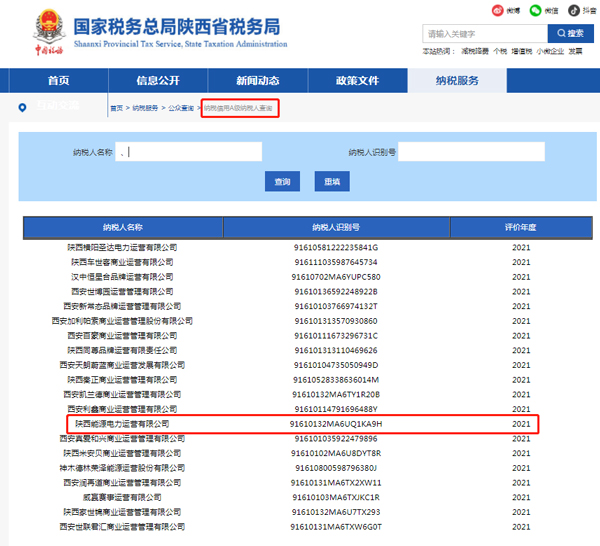 日前,在國家稅務總局陜西省稅務局開展的2021年度納稅信用等級評定工作中,公司榮獲“陜西省A級納稅人”榮譽稱號。