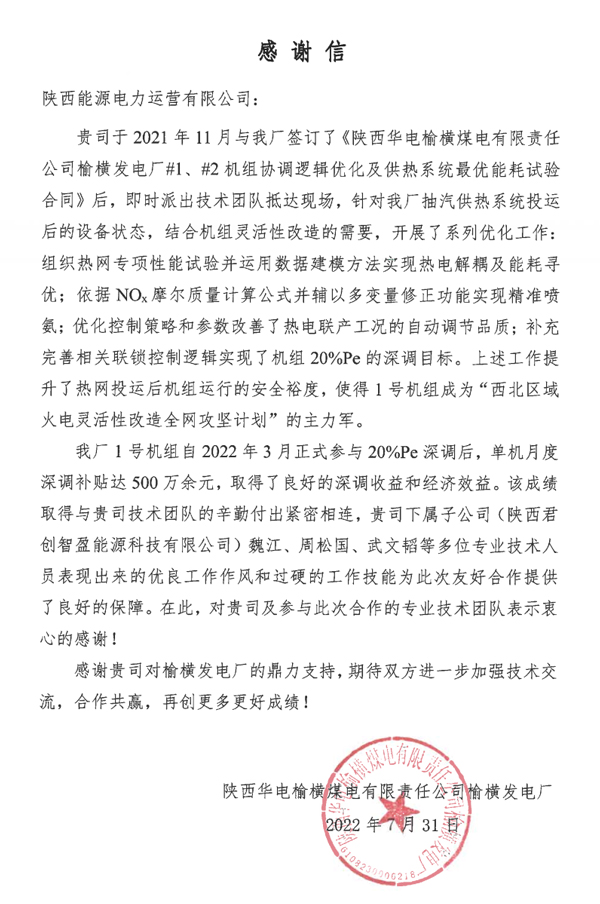 日前,君創(chuàng)科技順利完成華電集團榆橫煤電公司#1、#2機組協(xié)調邏輯優(yōu)化及供熱系統(tǒng)最優(yōu)能耗試驗,使業(yè)主機組成為“西北區(qū)域火電靈活性改造全網攻堅計劃”的主力軍。