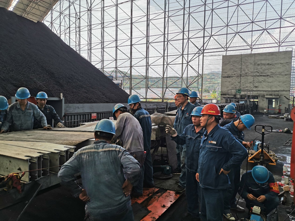 入夏以來,商洛項目部全力加強設備隱患排查,實行閉環管理,力爭及時將隱患、缺陷消除在萌芽階段,做到“發現一處,消除一處”,為迎峰度夏打好安全基礎。8月2日15:30,機組原灰庫分選管道突發嚴重堵塞,項目部緊急組織人員開展搶修。在氣溫近50℃的原灰庫6米設備間,一股股熱浪撲面而來,檢修員工敲擊管道確定堵塞位置,焊工割孔進行壓縮空氣吹掃,同時在管道人孔處用力破碎板結積灰。現場工作環境十分惡劣,粉塵濃度大,工作溫度高,經過連夜搶修,終于在20:30疏通原灰庫分選管道,設備恢復正常運行。