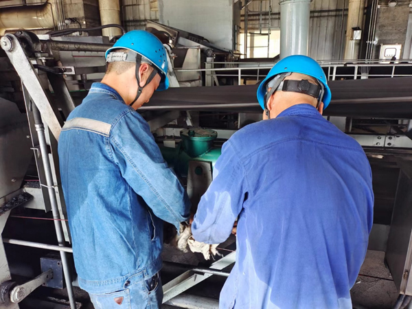 輸煤專業加強煤場設備巡檢,全力保證機組“口糧”。鋼結構干煤棚內、封閉煤場內氣溫高達50攝氏度,落煤筒內空間狹窄,輸煤班檢修人員細致檢查每塊襯板是否有嚴重磨損及起翹,保障機組正常供煤。每次外出巡檢,除了隨身攜帶維修工具,醫藥箱也是必備品,熱得實在受不了就喝點藿香正氣水。一天下來,工作服都泛起了片片白色的汗漬。“有時設備故障,在廠房一呆就是一天,這種滋味就像蒸桑拿,但是高溫天氣下只有細之又細、慎之又慎,才能保證設備安全。”電氣專業員工李彪說道。他對這種“燒烤”體驗早已習以為常。