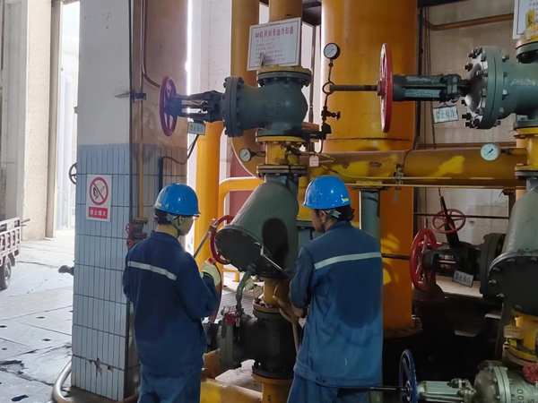 8月8日下午15:00,陽光熱辣毒烈,室外地面溫度已達64℃,鍋爐吸風機機房環境溫度也已近50℃。承擔鍋爐平衡燃燒任務的“大家伙”——吸風機早已不堪重負,軸承溫度已接近報警值“紅線”,時刻危及鍋爐正常燃燒。風泵班員工只能雙管齊下,一方面加強巡檢、加裝冷卻器等措施給吸風機“退燒”,另一方面用水管澆淋給“發燒”的機房環境“強制物理降溫”。每天,這樣的噴淋要在烈日下持續到下午五六點,通過降低環境溫度讓軸承“涼”到80℃以下,保障吸風機正常運行,確保鍋爐燃燒正常燃燒。雖然大家累得筋疲力盡、工服濕透,但是對他們來說,和吸風機正常運轉相比,在烈日下經受的高溫似乎不值一提。