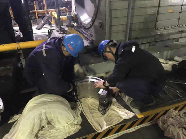 1月25日,農歷大年初五,渭河發電#4爐煙道蒸汽長吹灰器L2在運行中故障,嚴重影響機組安全運行。情況緊急,渭河項目部立即檢查分析,判斷故障原因為吹灰器頻繁過載而發生卡死,若不及時抽出卡塞的吹灰器,將在2—3時內被燒變形,整個吹灰器也將徹底損壞,要想盡快抽出吹灰器桿,全體人員只有徒手盤出吹灰器桿桿。42米高的鍋爐平臺上,即使戴著手套,也還是感到陣陣徹骨寒意,鍋爐班值班人員兩人一組,輪番上陣,一組換下來,手指都凍得僵硬。經過連續3個小時戰斗,順利完成了搶修任務。
