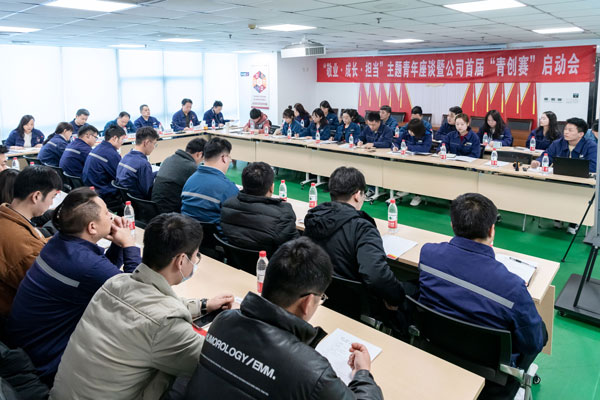 與會人員觀看了《同心筑夢 強企有我》微視頻,回顧了團委成立以來的工作開展情況和青年員工的成長進步。團委書記曹林宣讀了《關于開展公司首屆“青創賽”的通知》,對大賽機制和激勵獎勵作了重點講解。人力資源部主任魏鐸對公司青年人才培養政策進行宣講,幫助青年厘清職業規劃。