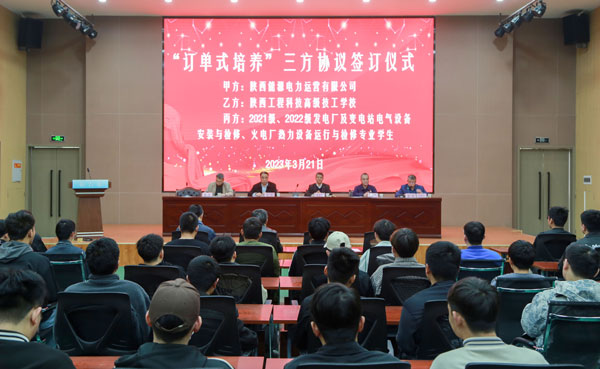 3月21日,公司與陜西工程科技高級技工學校舉行“訂單式培養”三方協議簽訂儀式,接受委培的4個“電力運營訂單班”(電力系統班、熱電班、新能源及電氣班)共200余名學生參加活動。“訂單班”校企合作模式是公司聯合集團內部優質培訓平臺為企業人才梯隊建設布新局、拓新路的重要舉措,是有效促進教育鏈、產業鏈、人才鏈與創新鏈有機銜接的積極探索。陜西工程科技高級技工學校黨委負責人、校長李若飛、副校長穆廣利、趙利參加簽訂儀式。