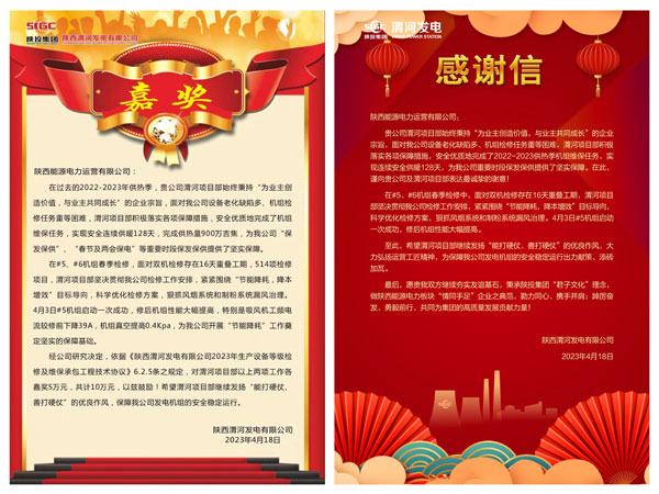 4月25日,渭河發(fā)電黨委書記、董事長郭進民,副總經(jīng)理楊建平及副總工程師李志高一行給公司渭河項目部送來感謝信和嘉獎通報。