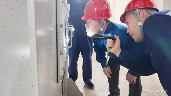 在富縣臨時項目部,毛冬紅詳細了解職工食宿情況,深入生產區域進行安全檢查,并與青年員工親切交談,勉勵他們要不斷學習和提高業務水平,盡快適應一流發電企業管理要求。同時對機組調試試運期間安全管理、班組建設、青工培訓等提出具體要求。