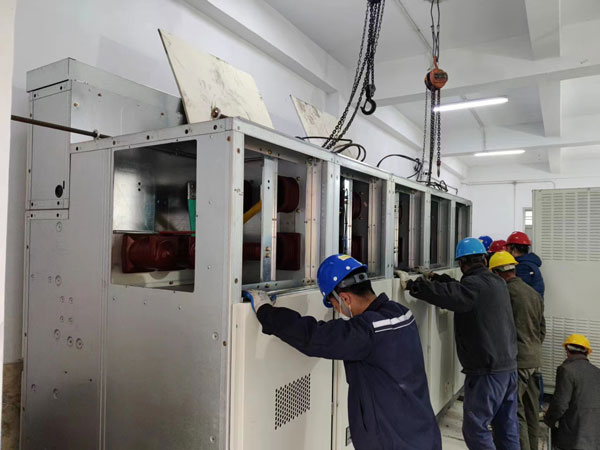 保運(yùn)最重要,寒風(fēng)何所懼。時(shí)間一分一秒地過去,不知不覺已是傍晚時(shí)分,檢修工作也進(jìn)入最關(guān)鍵的時(shí)刻。6KV輸煤段配電柜吊裝前,檢修小組做了充足的準(zhǔn)備,但即便如此,吊裝過程中小組成員還是慎之又慎,不斷相互提醒,一絲一毫地移動(dòng)著配電柜,生怕稍有不慎造成損壞。配電柜終于吊裝成功,大家長(zhǎng)舒一口氣,緊皺的眉頭也舒展開來(lái)。地基處理完成后,工作人員第一時(shí)間完成配電柜安裝,按時(shí)按點(diǎn)、保質(zhì)保量完成了廠外6KV輸煤段配電柜沉降檢修工作。