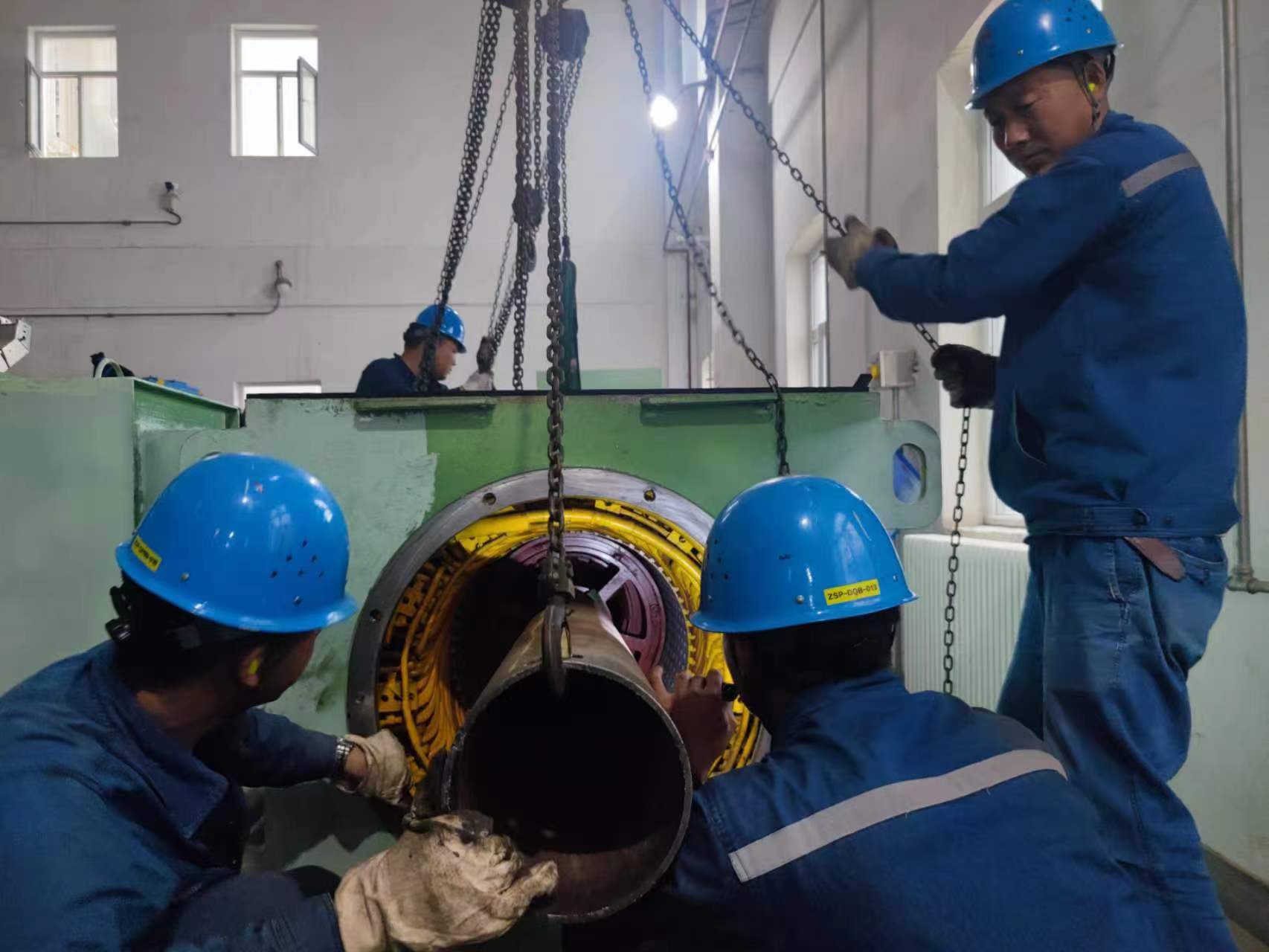汽機轉機班員工冒著酷暑,對#3機乙汽泵冷卻器冷卻水管進行檢查疏通,防止循環液溫度升高引起汽泵跳閘,保障發電機組穩定運行。(楊瑞)