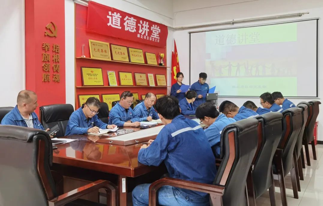 日前,麟北項目部黨支部舉辦道德講堂活動。項目部管理干部、黨員、團員及各班組代表參加活動。