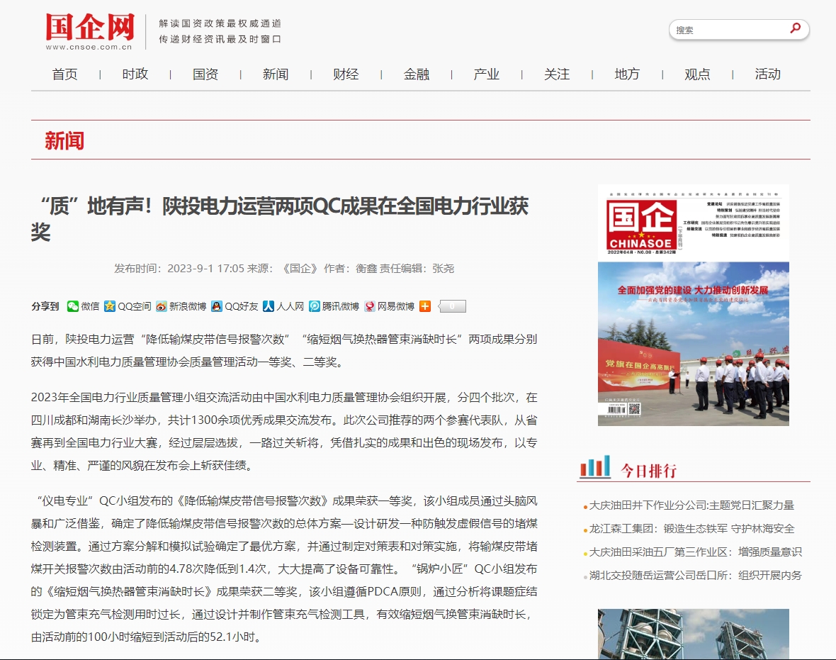 2023年全國(guó)電力行業(yè)質(zhì)量管理小組交流活動(dòng)由中國(guó)水利電力質(zhì)量管理協(xié)會(huì)組織開(kāi)展,分四個(gè)批次,在四川成都和湖南長(zhǎng)沙舉辦,共計(jì)1300余項(xiàng)優(yōu)秀成果交流發(fā)布。此次公司推薦的兩個(gè)參賽代表隊(duì),從省賽再到全國(guó)電力行業(yè)大賽,經(jīng)過(guò)層層選拔,一路過(guò)關(guān)斬將,憑借扎實(shí)的成果和出色的現(xiàn)場(chǎng)發(fā)布,以專業(yè)、精準(zhǔn)、嚴(yán)謹(jǐn)?shù)娘L(fēng)貌在發(fā)布會(huì)上斬獲佳績(jī)。