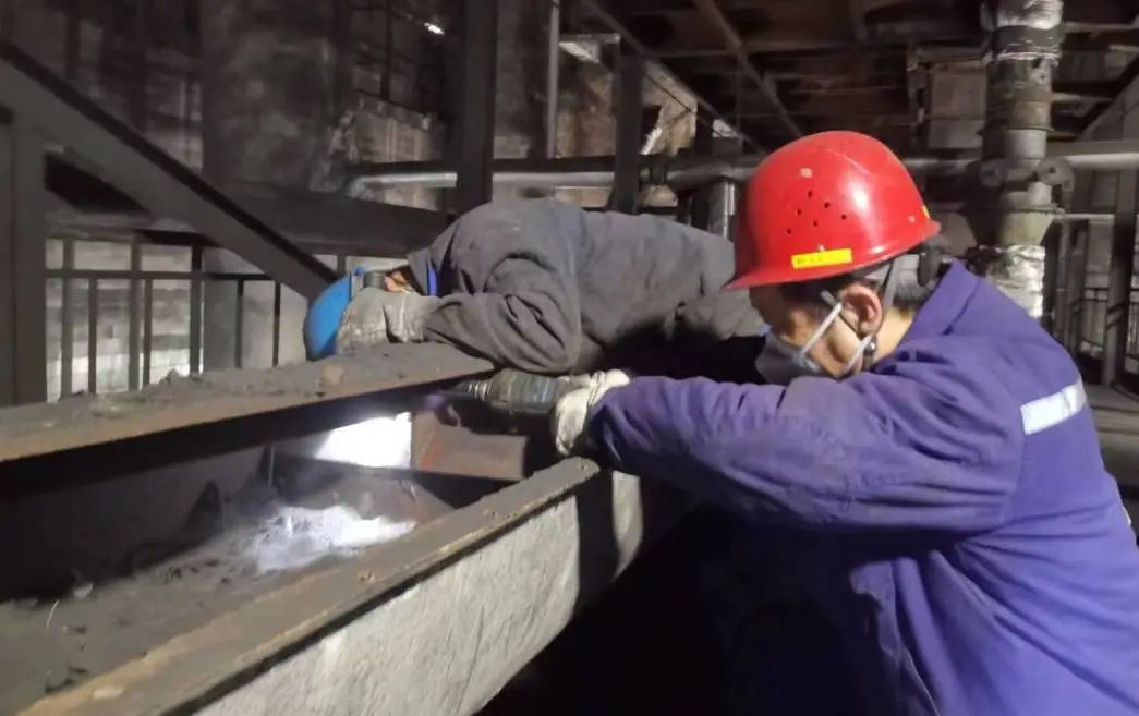 #5爐24米平臺和皮帶層上,雖然氣溫已降至0℃以下,但現場工作氣氛卻熱火朝天。大家奮力清理積粉、封堵樓板孔洞、加固地面鋼板……經過10余天治理,現場煥然一新,平臺地面干凈整潔,孔洞嚴密平整、鋼板堅固可靠。