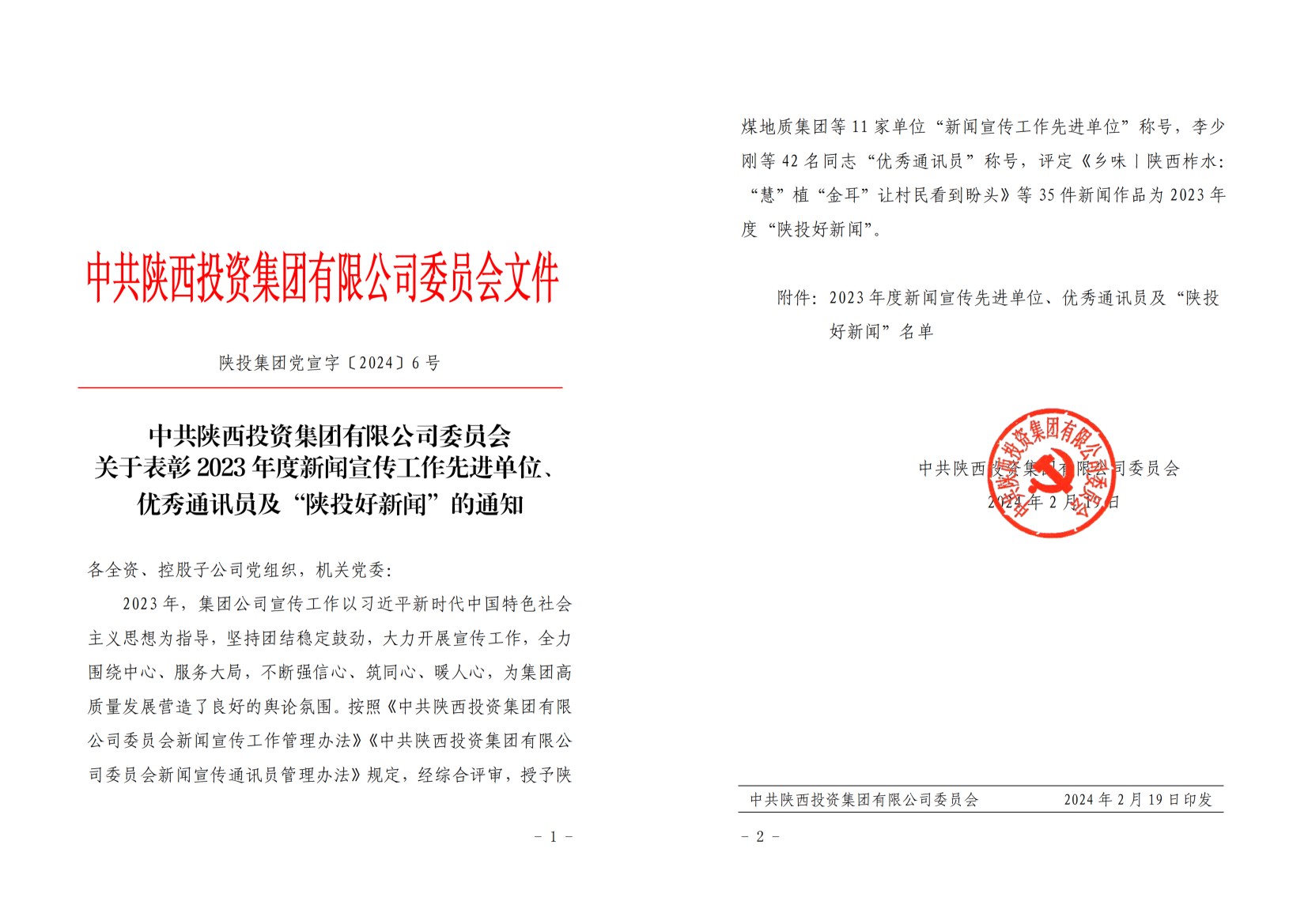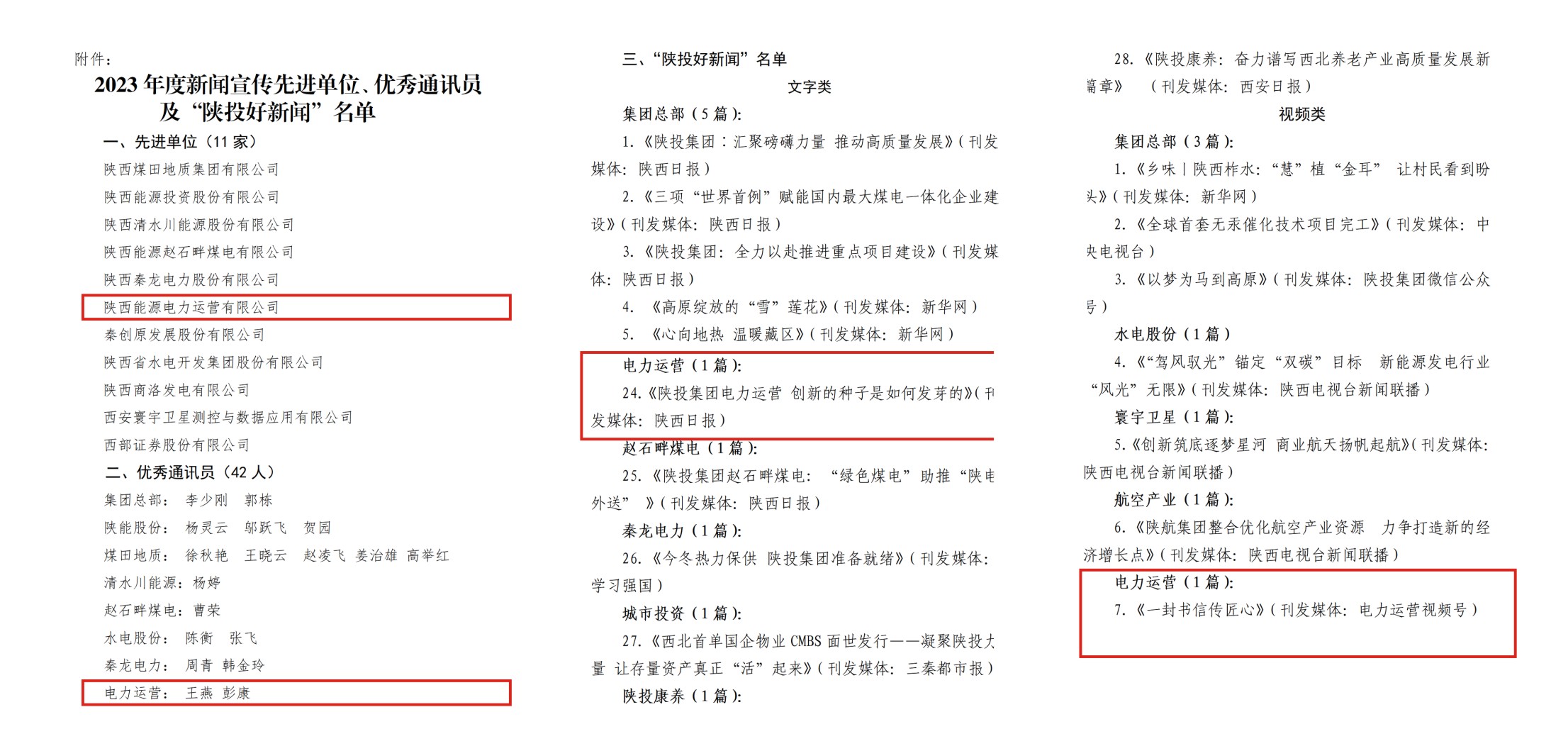近日,公司榮獲集團(tuán)公司2023年度“新聞宣傳工作先進(jìn)單位”稱號,連續(xù)五年獲此殊榮。公司拍攝的視頻《一封書信傳匠心》、稿件《陜投集團(tuán)電力運營 創(chuàng)新的種子是如何發(fā)芽的》分獲“陜投好新聞”。
