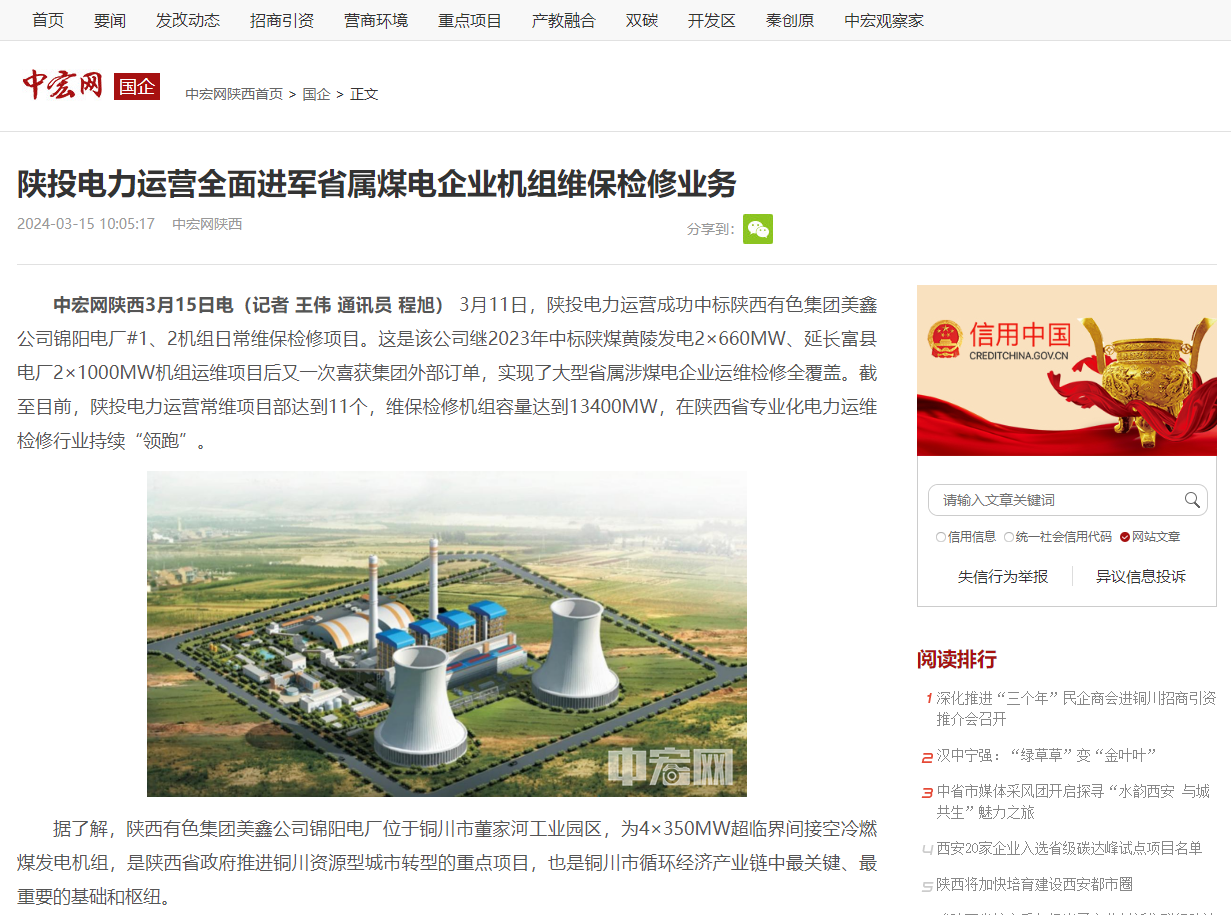 3月11日,公司中標陜西有色集團美鑫公司錦陽電廠#1、2機組日常維保檢修項目。這是公司繼2023年中標陜煤黃陵發(fā)電2×660MW、延長富縣電廠2×1000MW機組運維項目后又一次喜獲集團外部訂單,實現(xiàn)了大型省屬涉煤電企業(yè)運維檢修全覆蓋。目前公司常維項目部達到11個,維保檢修機組容量達到13400MW,在陜西省專業(yè)化電力運維檢修行業(yè)持續(xù)“領跑”。