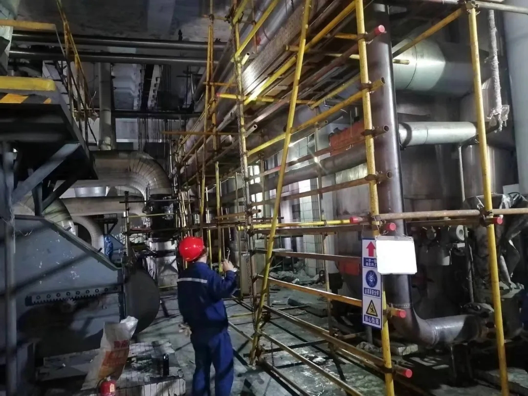 “退役軍人突擊隊”成員王書龍負責本次等檢所有腳手架搭設的安全監督檢查。從人員崗前培訓到作業“四措兩案”的編制,從有限空間內部作業前的有害氣體檢測、人員登記到腳手架的規范搭設,從橫桿端部的防撞帽、立桿下部的墊板到登高跨距標準要求、安全帶的一步一跨,他事無巨細認真檢查。現場的腳手架作業點他幾乎每天都要走一遍,從不放過任何一個細節。