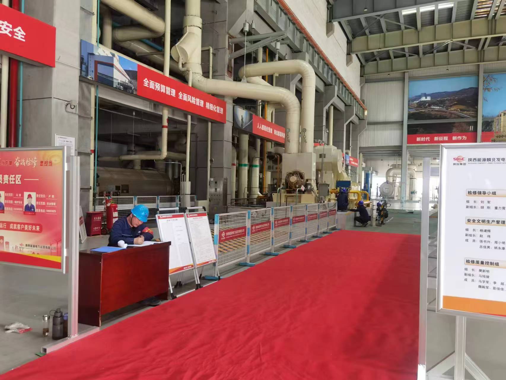 項目部嚴格落實檢修關鍵節點管控,定期梳理項目進度,優化工序流程,每天站班會詳細交代開工注意事項、安全技術措施、作業流程規范,促使人員知曉作業要求。科學規劃的檢修平臺上,耗材、工器具及備品備件擺放有序,安全注意事項、危險源辨識預控、黨員示范崗等標準化展板規范醒目,處處呈現出濃厚的安全文明檢修氛圍。