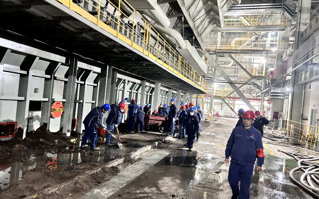 富縣項目部立即組織人員奔赴現場,排查原因,檢查發現撈渣機右側齒輪箱發生故障。為確保機組滿負荷出力,項目部緊急組織人員連續排渣,制定消防水遠程沖渣、降溫后集中清理方案,人員分班連續作業,經過連續60個小時的全力奮戰,共清理事故放渣500余噸,有效緩解了渣井壓力,為更換備品備件爭取了寶貴時間。