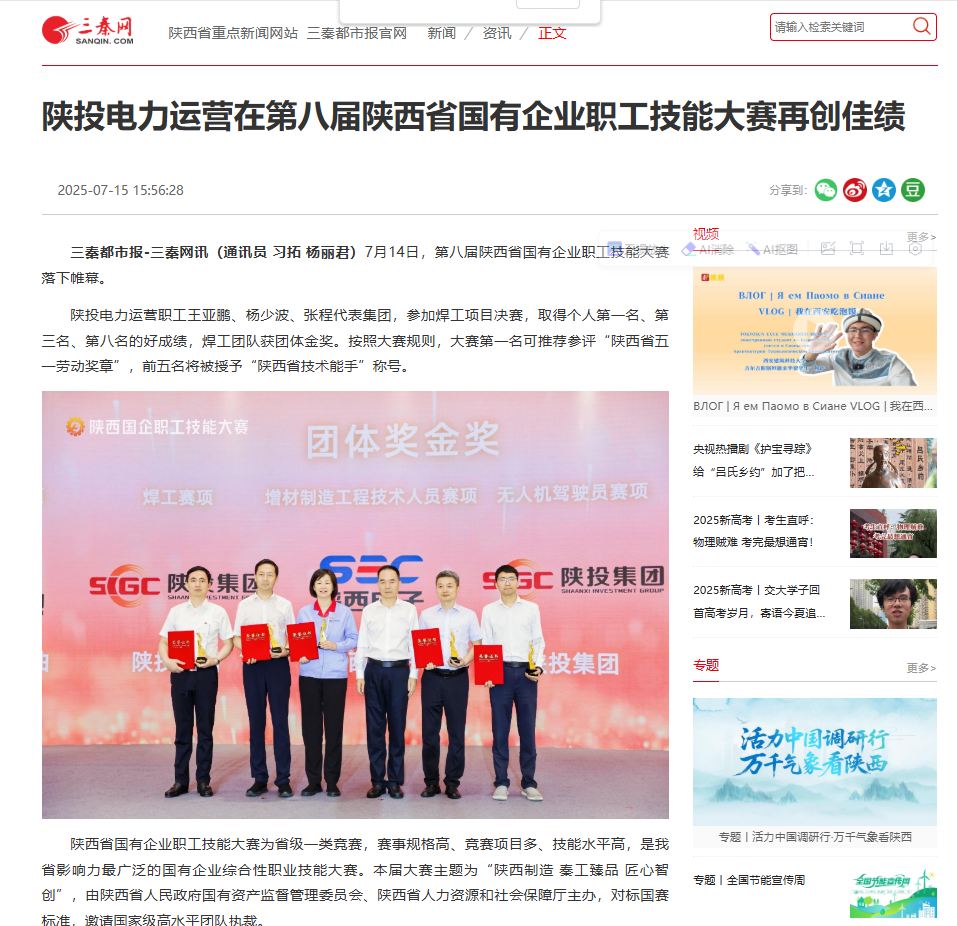 7月14日,第八屆陜西省國有企業職工技能大賽落下帷幕。陜投電力運營職工王亞鵬、楊少波、張程代表集團,參加焊工項目決賽,取得個人第一名、第三名、第八名的好成績,焊工團隊獲團體金獎。按照大賽規則,大賽第一名可推薦參評“陜西省五一勞動獎章”,前五名將被授予“陜西省技術能手”稱號。