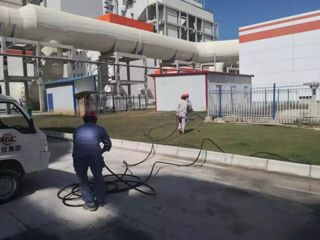 儀電一班克服無材料、無設備的困難,兵分三路,迅速聯系業主方靠實材料,一路人員就地查看水泵及配電柜情況,另一路前往3公里外的庫房搬運所需的200米電纜。烈日當空,38度高溫空曠的庫房料場上,所需的三芯25㎜2電纜被壓在其他電纜下方。班組員工心系搶修,揮汗如雨,硬是將其他電纜搬開,肩扛手抬將所需電纜搬上運輸車輛趕回作業地點。