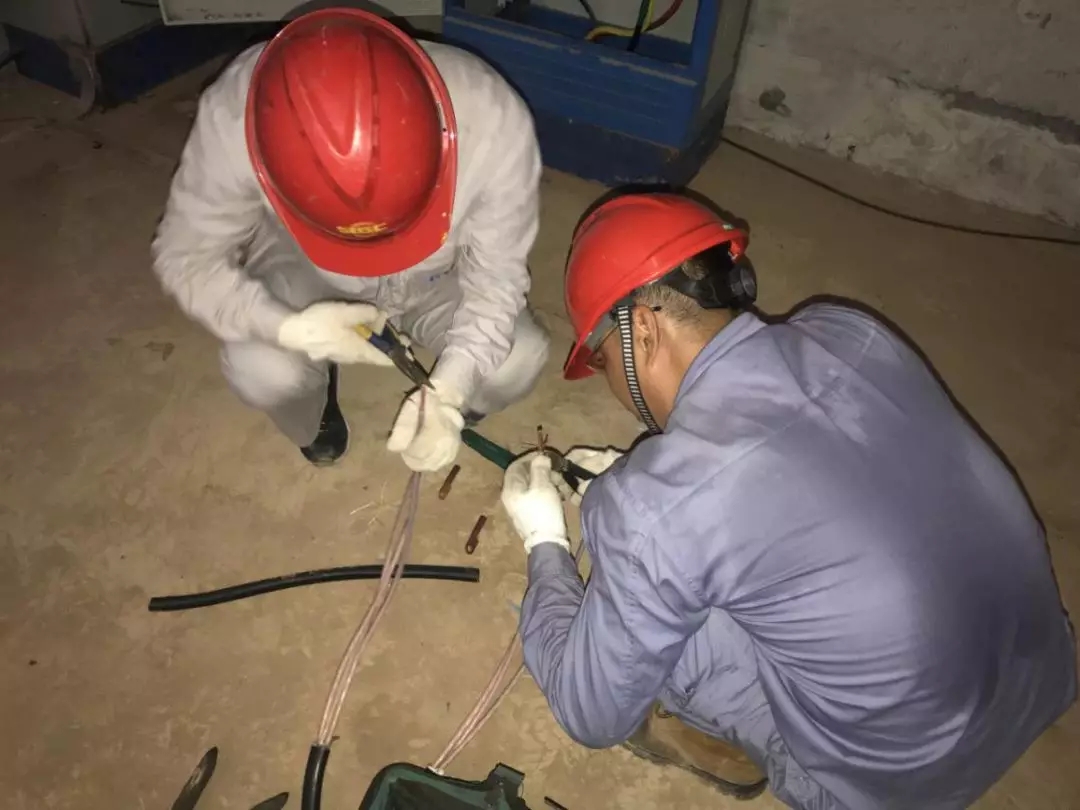 10:00,200米電纜鋪設到位,班組成員分為兩組,從電纜兩端同時開始作業,割開絕緣、壓接銅鼻子、確認相序、開關端子接線緊固、搖電纜絕緣、開關送電,一氣呵成。