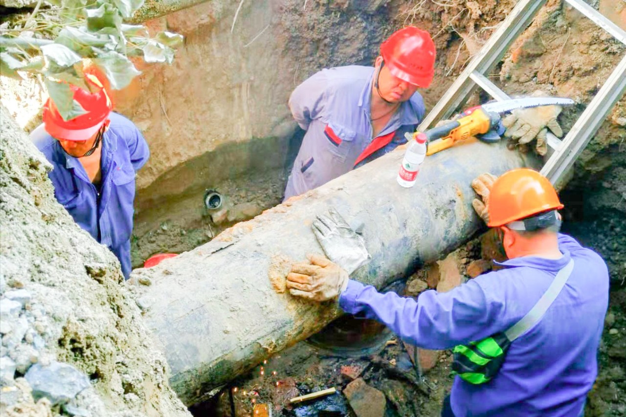8月19日,渭河水源地二期生活水母管發生泄漏,渭河項目部水化班緊急組織人員進行搶修。炎炎烈日下,全體工作人員沿著復雜的管線查找漏點,消除缺陷。經過三個晝夜連續奮戰,于21日18時圓滿完成搶修任務,保證了廠區和家屬區的生活供水正常。