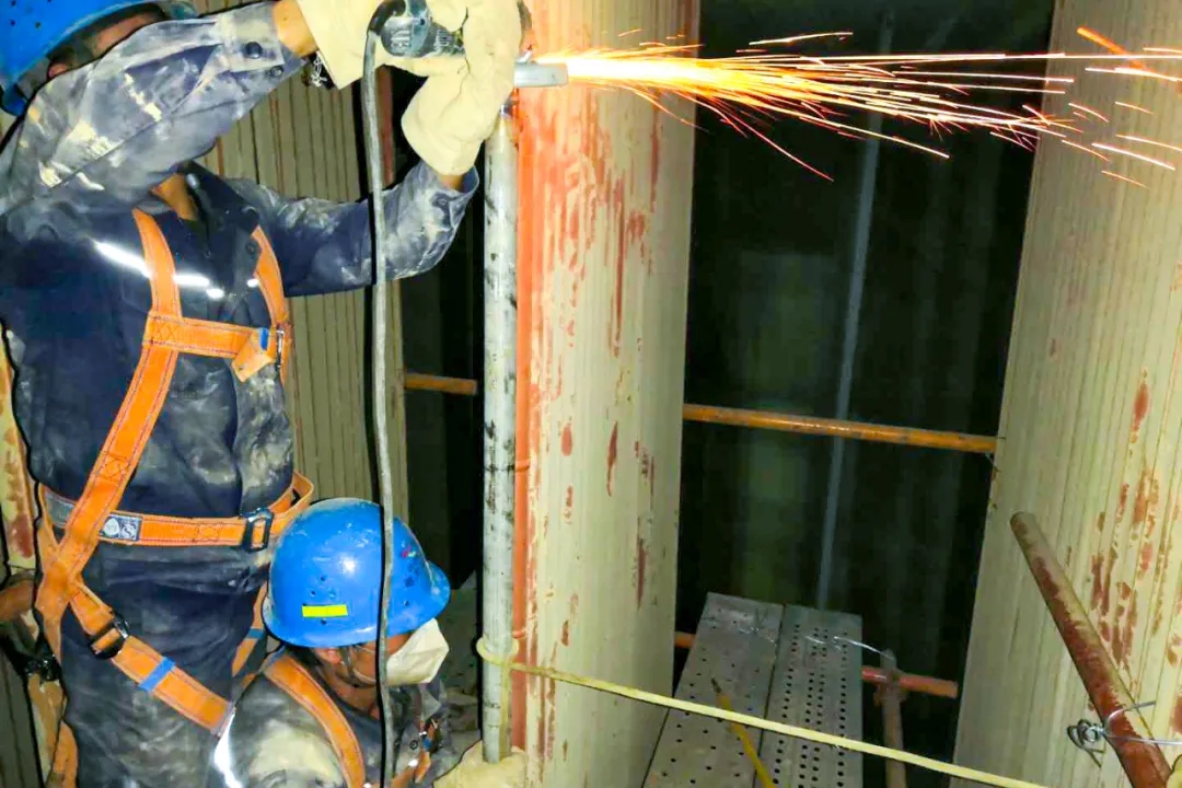 搶修現場,全體人員冒著爐膛內40余度的高溫和彌漫的灰塵,加班加點開展工作,切割、打磨每一道工序都精益求精,制口、對口每一項工作都一絲不茍。搶修期間,安技辦和鍋爐專業全程參與,并帶領大家檢查出了爐管內有鋼筋等異物的重大缺陷,徹底解決了爐管長期超溫的安全隱患。