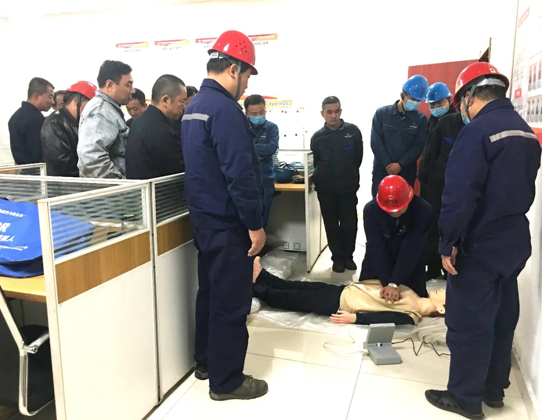 安全專工帶著心肺復蘇模擬人深入到各班組,講解生產(chǎn)現(xiàn)場一般急救常識,著重介紹了“心肺復蘇法”在現(xiàn)場急救中的應用,并按照“心肺復蘇法”實操標準步驟講解示范。通過逐人實操練習,不斷總結(jié)經(jīng)驗,學習急救知識,最終達到100%完成標準“心肺復蘇法”全程操作。