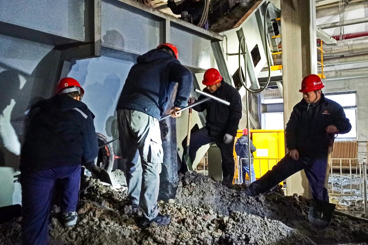 緊急關(guān)頭,清水川項(xiàng)目部立即出動(dòng)灰硫二班及項(xiàng)目部全體管理人員投入清渣工作。零下十幾度的室外冷風(fēng)刺骨,室內(nèi)卻是一片熱火朝天的大干場(chǎng)面,鐵锨、耙子、捅條,“十八般”清渣工具全部排上用場(chǎng),?挖、手刨、水沖,能想的辦法都用上,大家干得滿臉灰塵、汗流浹背,卻一刻也不停歇。
